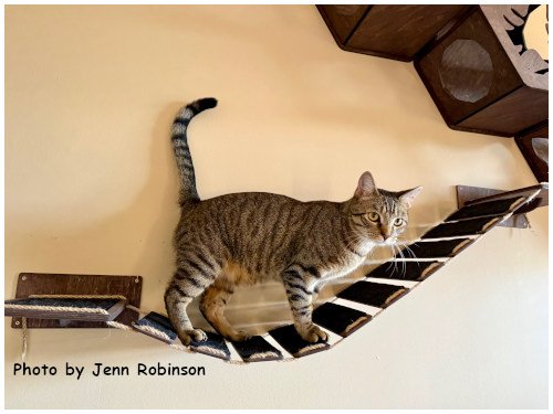 Walker: I’m an orange tabby, bobtail boy, and I’ve probably got a Manx cat for an ancestor somewhere. I’m the perfect weight for my big bones, topping the scale at 16 pounds. When I went in for my vaccines, the vet tech wanted to know if I was a cat or a mountain lion. I’m shy, but once we are friends, I want all the pets!