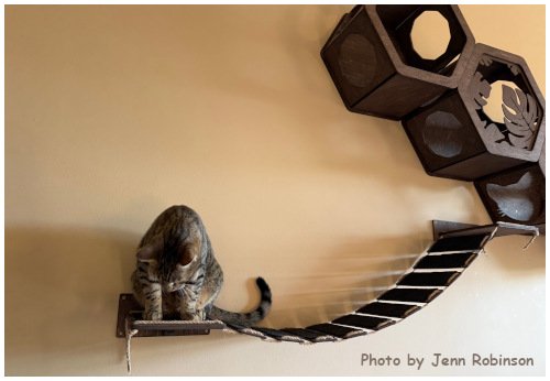 When she’s not busy supervising kittens or perfecting her athletic skills, Minty enjoys hanging out near her humans, offering moral support, and looking fabulous in her tuxedo attire.