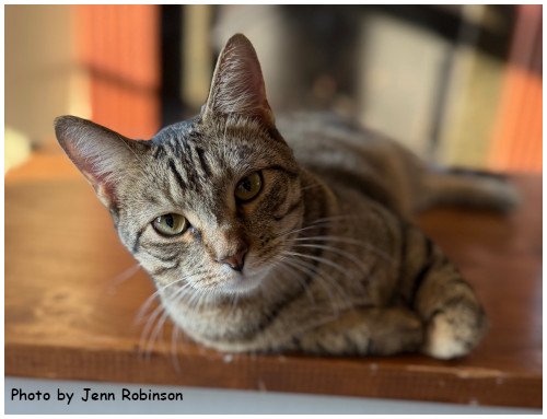 Hi, I’m a sweet tabby girl with big golden eyes and a gentle heart. I was born in January of 2025. I came inside just in time to have my very first—and only—litter of kittens. I was such a good mama, and now that my babies are grown and safe, it’s finally my turn to be cared for and loved. 💕