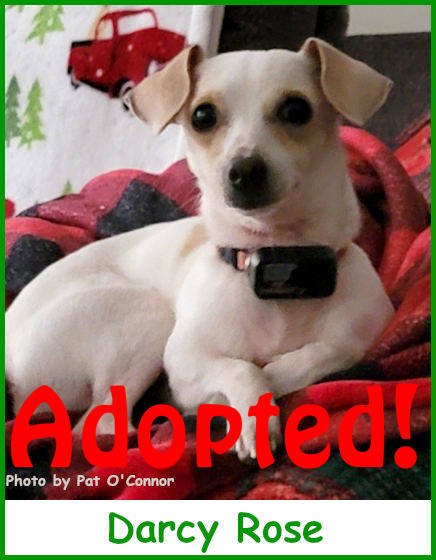 Darcy Rose is about 1½ years old. She was rescued from a backyard puppy mill along with eighteen other small dogs. When she came to her foster home, she was terrified of everybody and everything. She had no social skills and trusted no one to touch her or get close. Over the past several weeks she has learned to trust and accept love in her dog-friendly foster home. With the help of three small dogs, she has learned how to be a dog and belong to a pack. She has learned how to eat her meals from her bowl without encroaching on the others' meals. Darcy is now beginning to learn basic commands and will sit with her foster family while they watch a movie. She has gone from not knowing how to be touched, to wanting to be cuddled. Darcy is beginning to blossom like a rose! She is smart, loving, and so sweet. All she wants is to be loved and accepted. This little girl will be a dream come true for a family or single person.